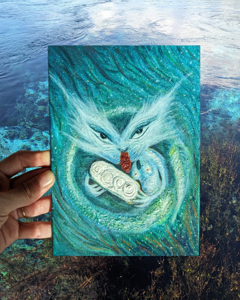 彼女はアオテアロア(マオリ語でニュージーランド)の3大龍神と言われ、彼女は命を生み出し、養い、清め、水や自然を守護しています。彼女の子供達、聖水、自然への想いほど清らかなものがあるでしょうか。